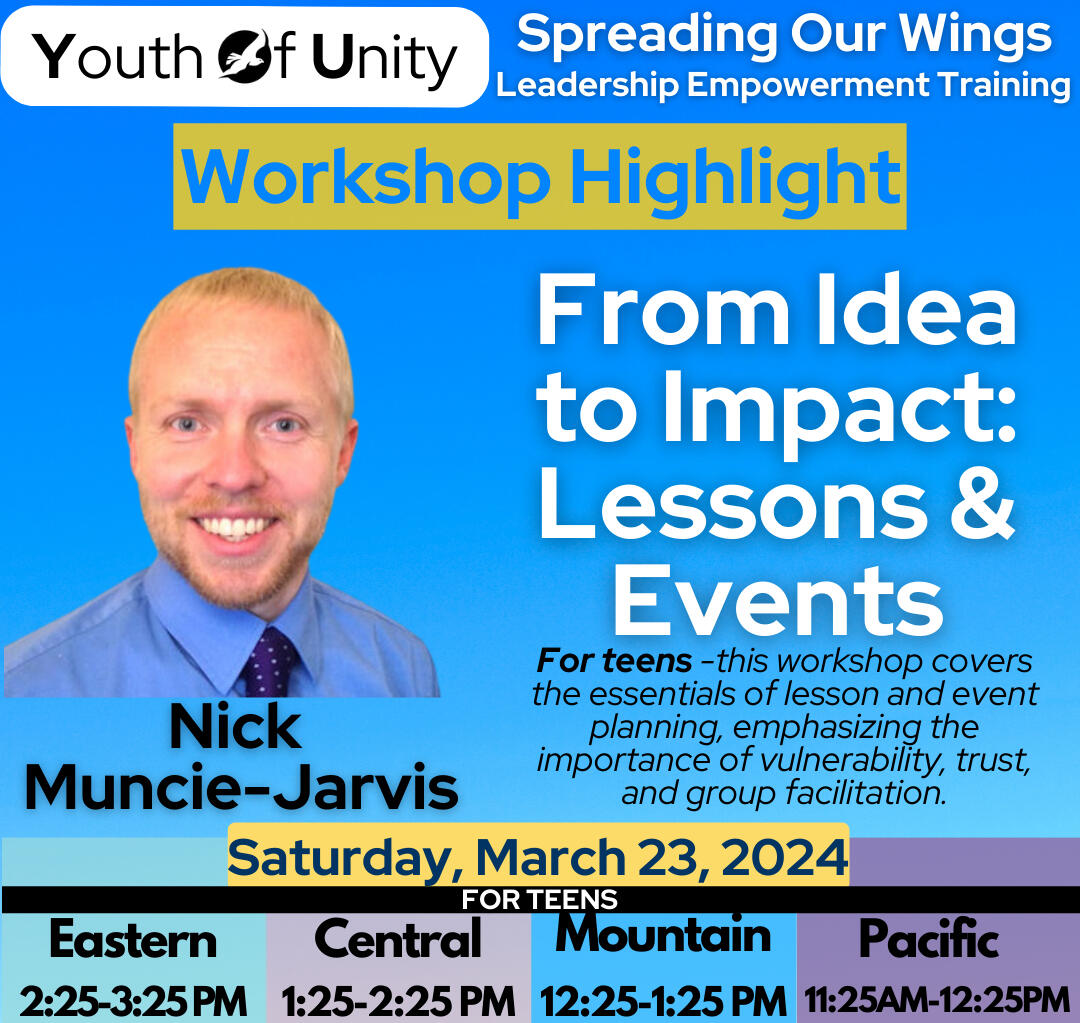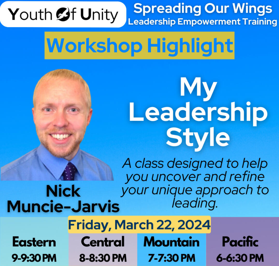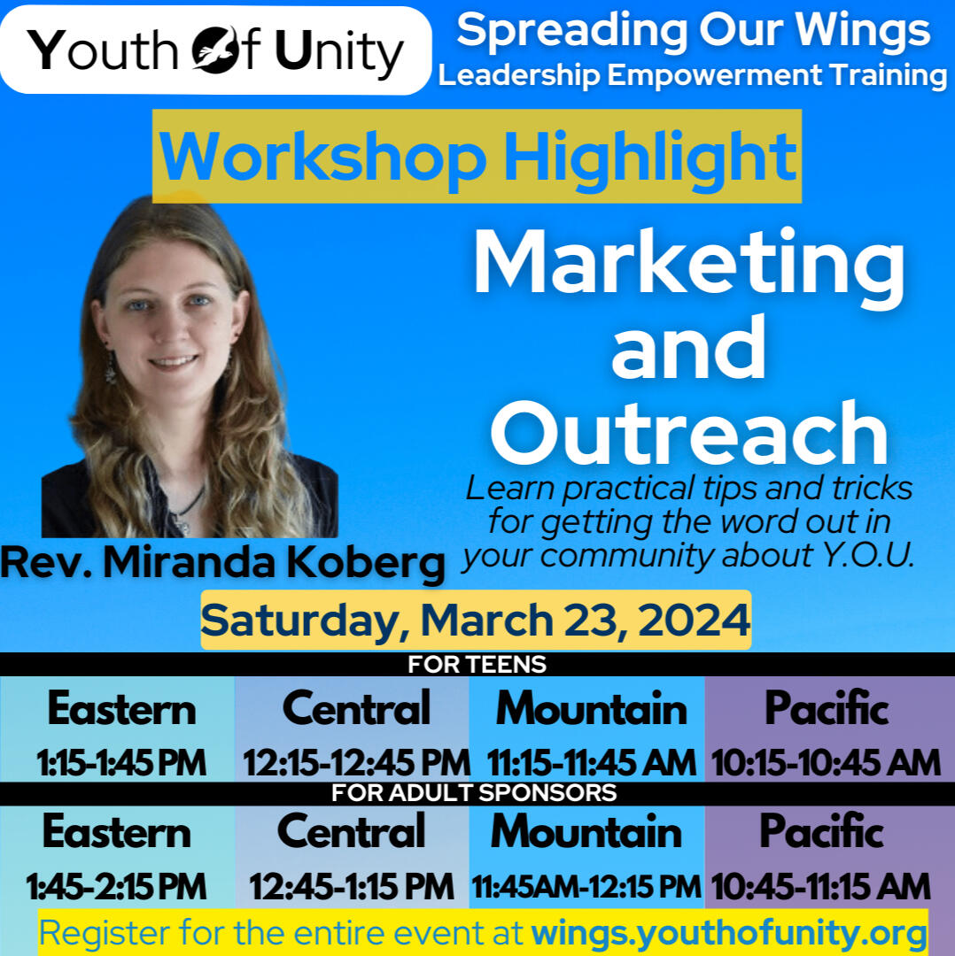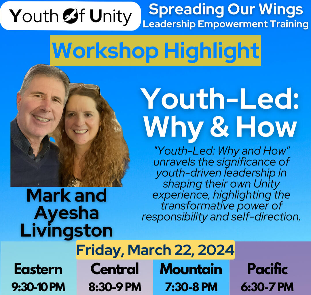 Experience the transformative power of "Spreading My Wings," now part of an ongoing series of leadership events. Our virtual empowerment training, designed for high school-aged YOUers and adult Sponsors, serves as your launchpad to elevate your leadership skills and deepen your understanding of your vital roles within the Youth of Unity. Join us for a year-long journey of growth and connection, building on the success of our initial extended event.