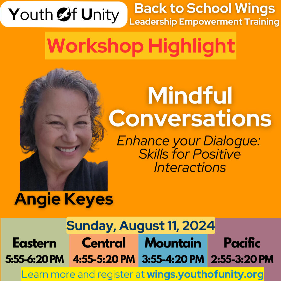 Learn about Mindful Conversations with Angie Keyes, the Y.O.U. Regional Consultant for Southwest Region. This incredible practice is so peaceful and offers a chance for you to step into your power.Get ready for a new school year with conversations that we are aware and then can be fully present to as you communicate with others.